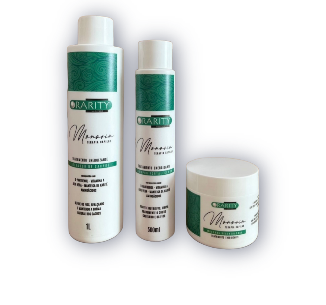 O KIT ENERGIZANTE FORTALECEDOR MONOIN A RARITY, é uma terapia Capilar que une força e crescimento, com fórmula exclusiva que combina ingredientes hidratantes, nutritivos e fortificantes para promever cabelos saudáveis e resistentes.ATivos: D'Pantenol,Vitamina A, ALoe Vera, MAnteiga de karitê, Aminoácidos.